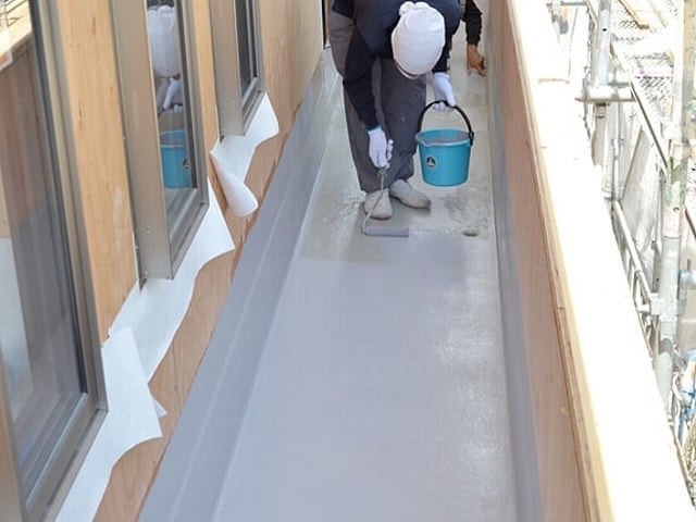 ベランダは建物の動きにそこまで影響がなく、なおかつ人がよく歩行するため、FRP防水層の特徴である耐摩耗性がいきてきます。(摩擦が起きにくいという意)